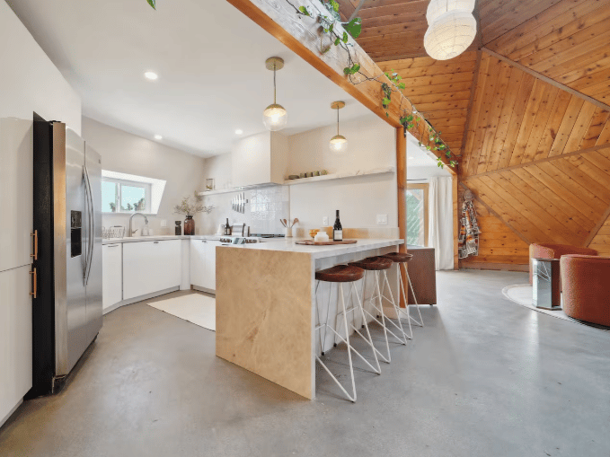 Set on two and a half private acres, this remodeled geodesic dome draws travelers seeking something out of the ordinary near Joshua Tree National Monument. Mountain views, a hot tub, and fenced grounds add to its sense of seclusion, supporting estimated yearly revenue of about $66,000.